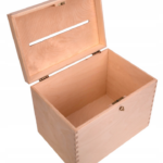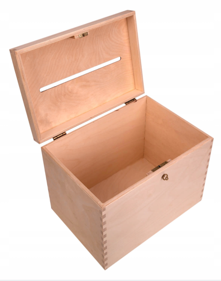 Drewniana skrzynka na koperty ślubne, którą można samodzielnie ozdobić.