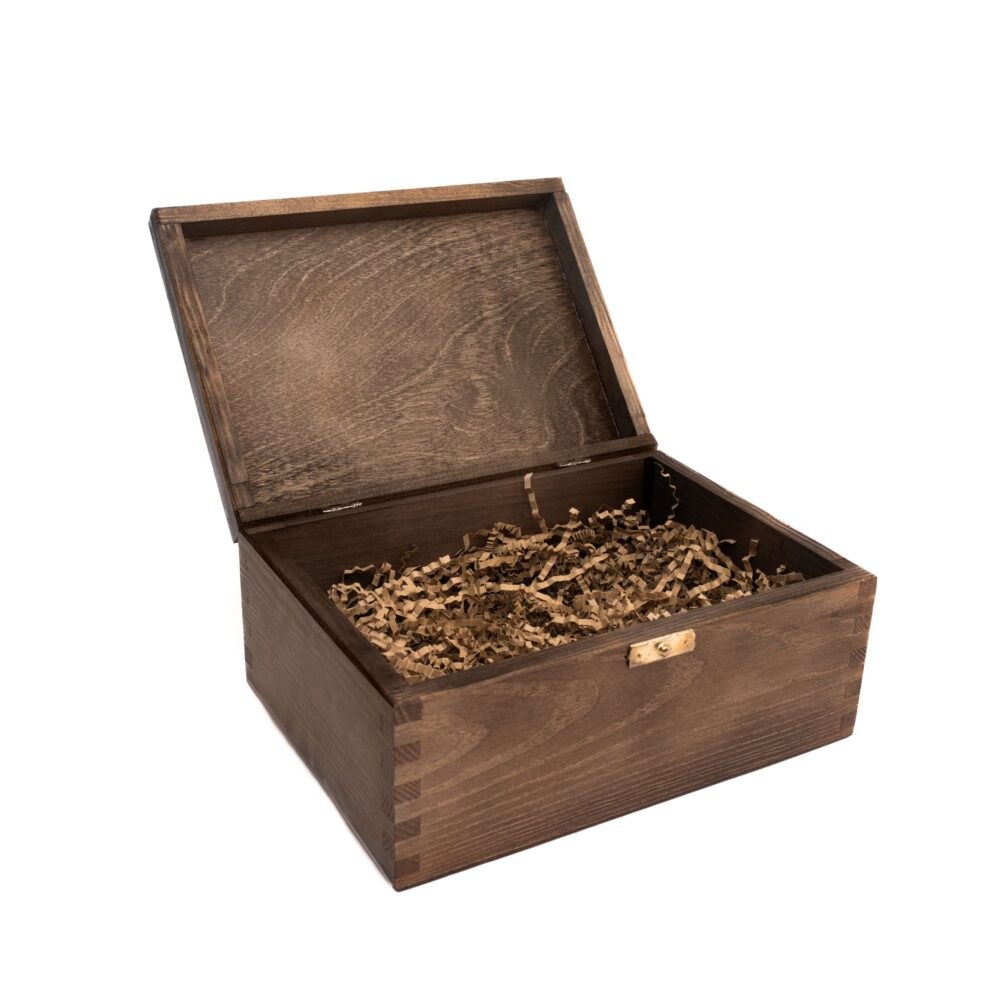 Dzięki swojemu naturalnemu wyglądowi skrzynka może być również bazą do własnej personalizacji – ozdabiania metodą decoupage, malowania lub grawerowania.