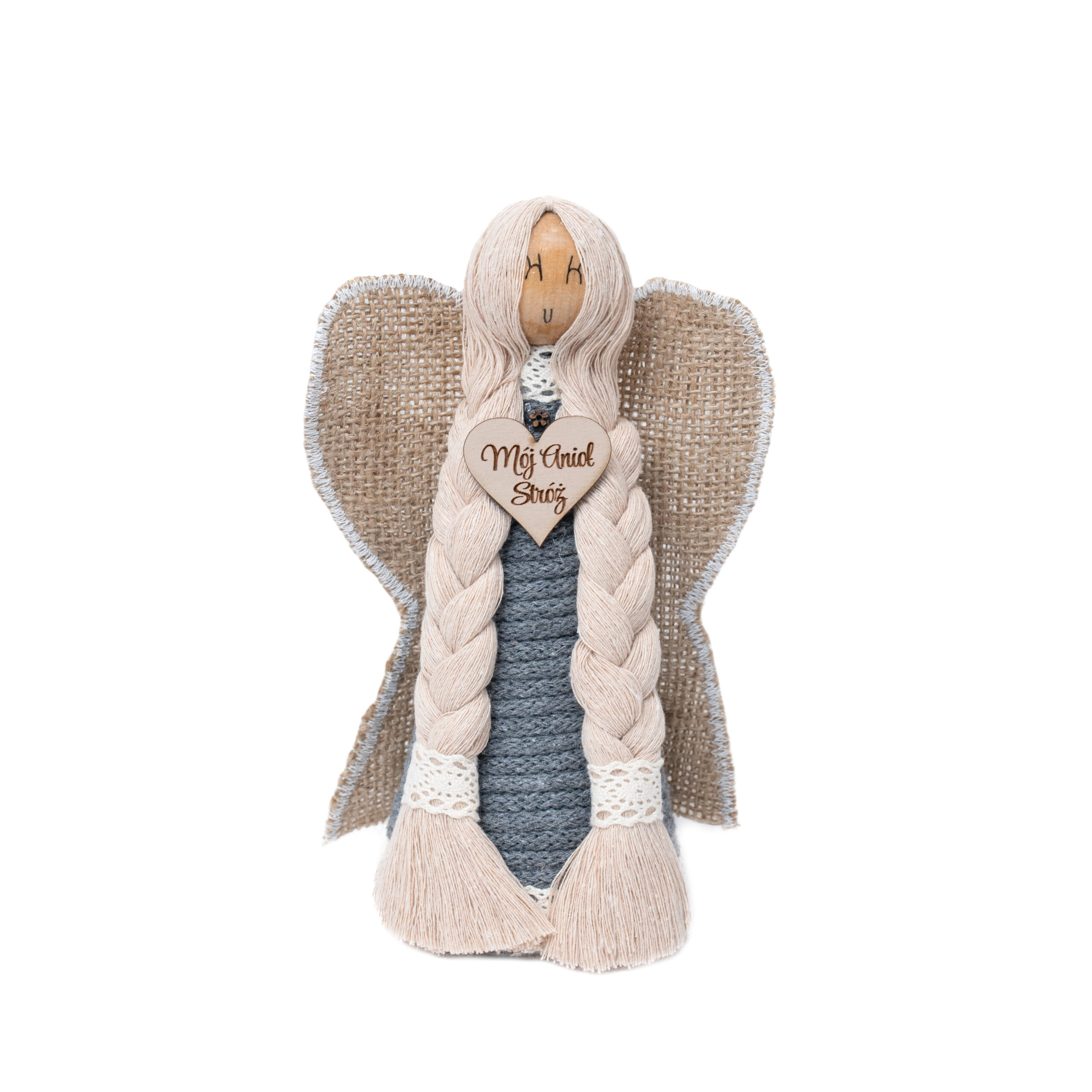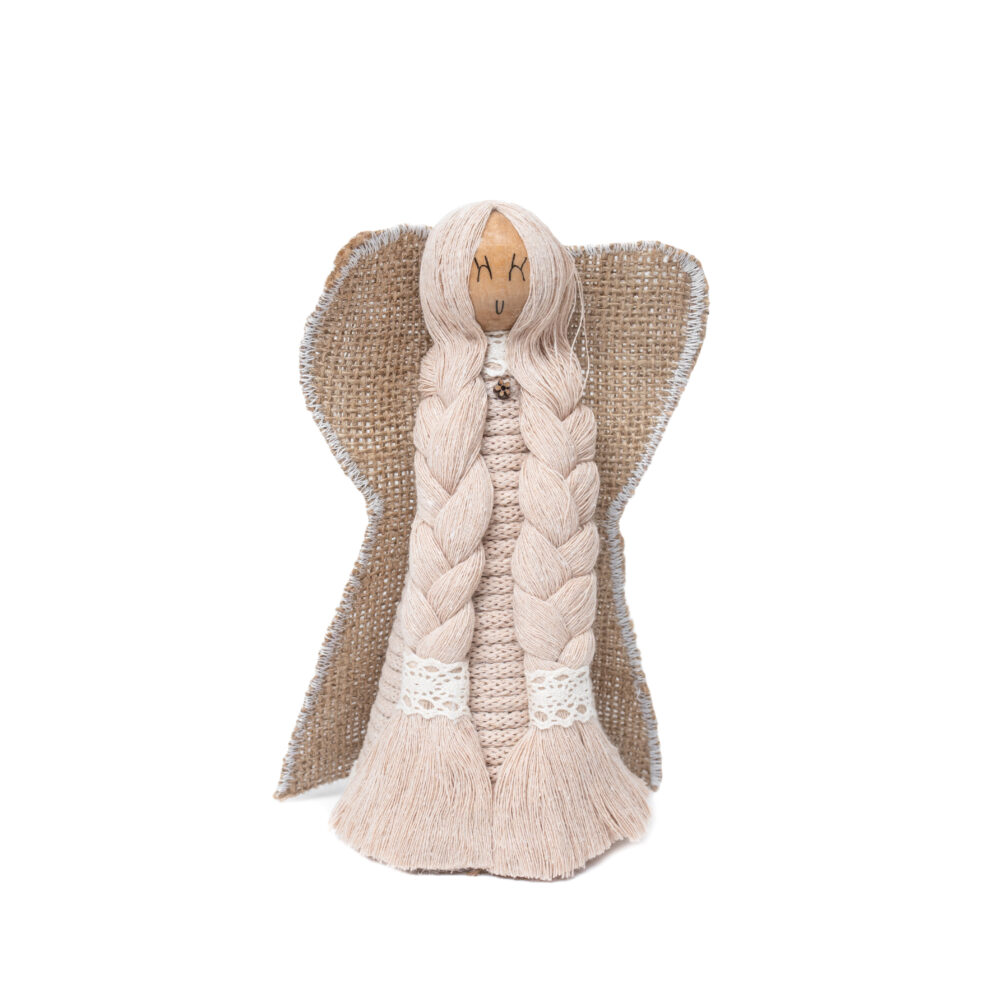 Drewniany anioł zdobiony sznurkiem 17 cm