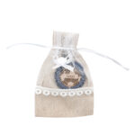 Breloczek zapakowany jest w elegancki, satynowy woreczek.