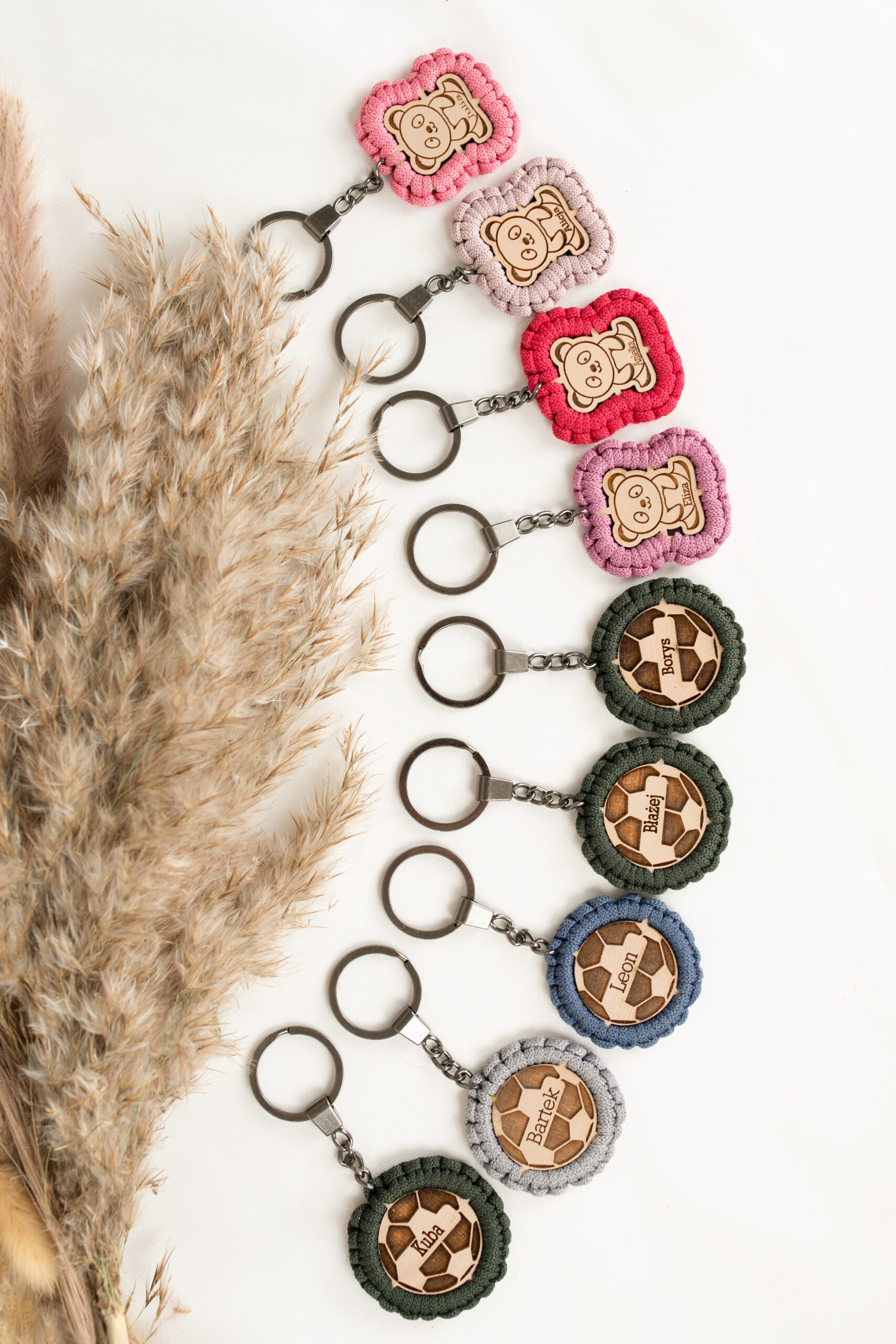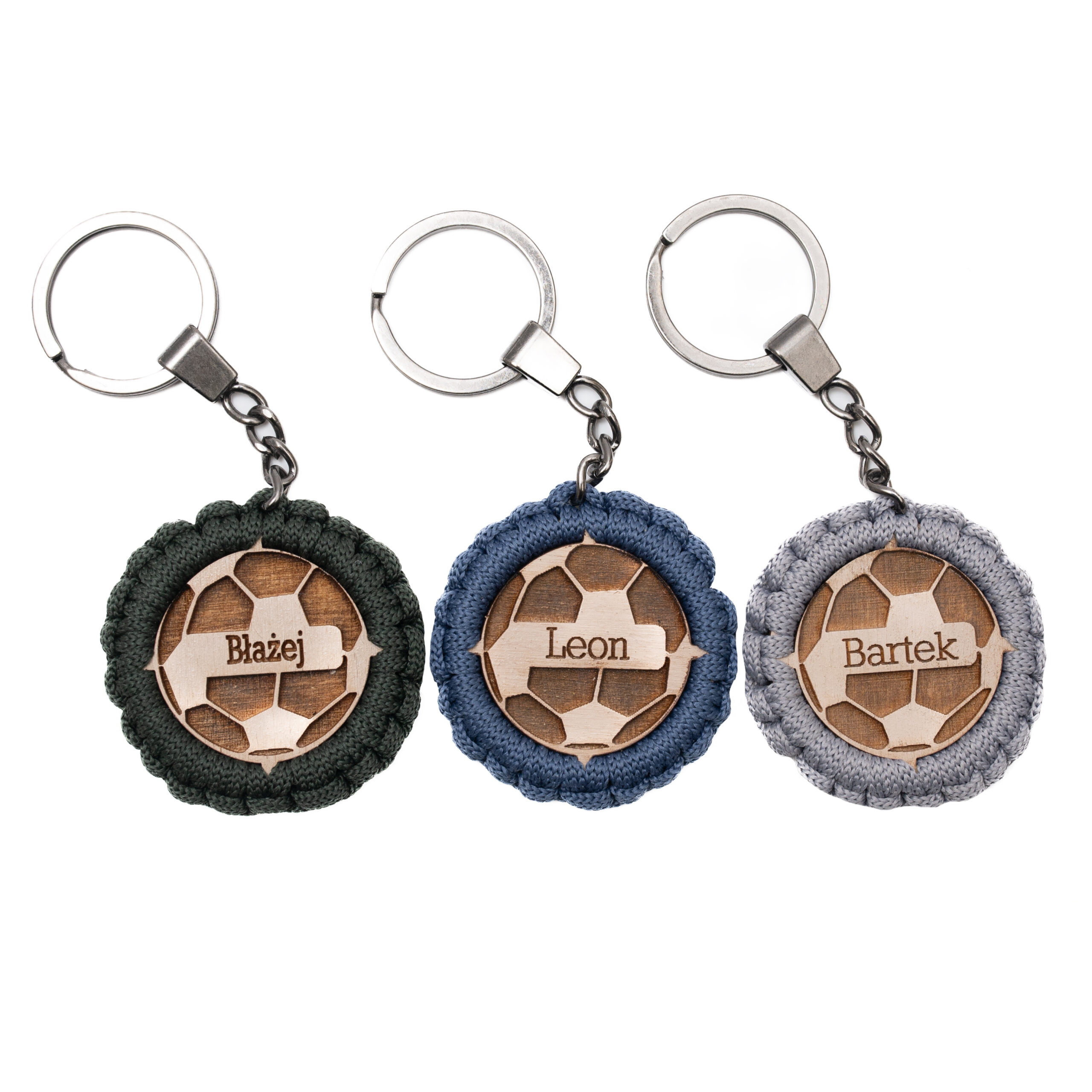 Imienny, ręcznie zaplatany breloczek dla chłopca- wzór PIŁKA.