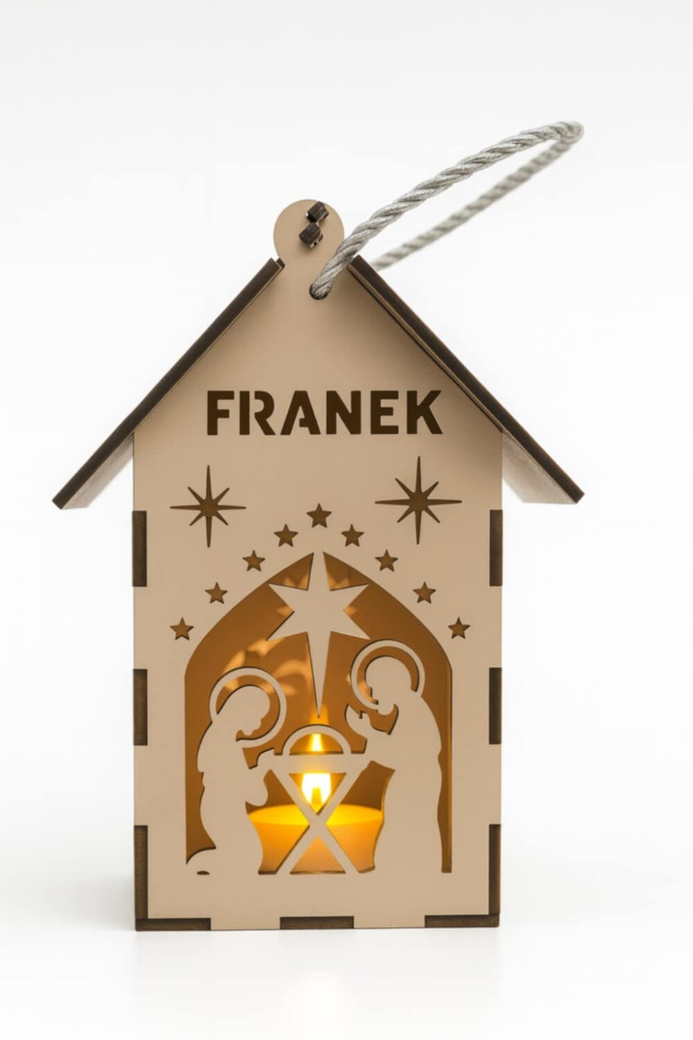 Lampion adwentowy z światełkiem w barwie zimnej.